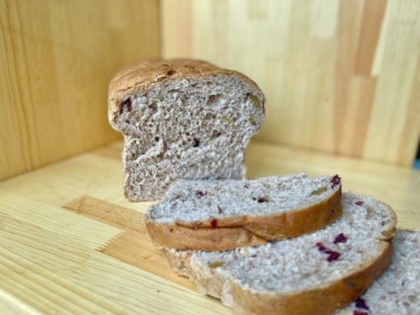 Our wheat bread mixed with cranberries, toasted walnuts and orange zest. Great for a turkey sandwich.