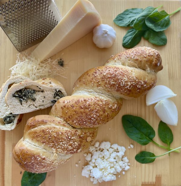 A twist filled with spinach, onion, feta cheese, garlic and spices